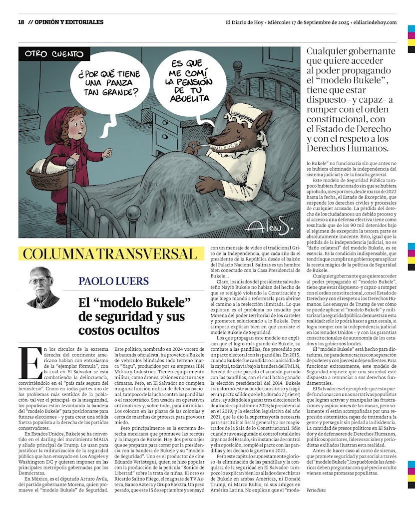 "Antes de hacer caso al canto de sirenas, que promete seguridad y paz social a través del “modelo Bukele”, los pueblos de las Américas deben preguntar con qué precio oculto vienen estas promesas populistas."