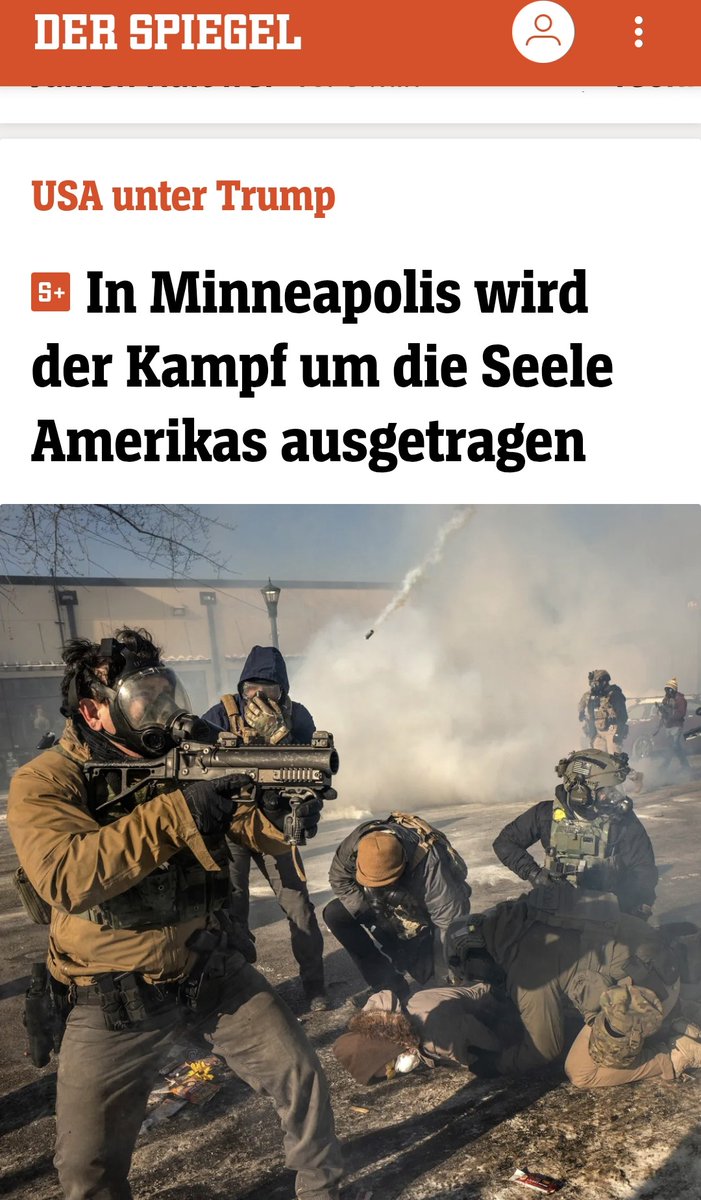 El que escribió este titular, sentado en un escritorio en Hamburgo, resumió de manera genial la esencia de lo que está pasando en Minneapolis: una batalla por el alma de los Estos Unidos. Cierto.
